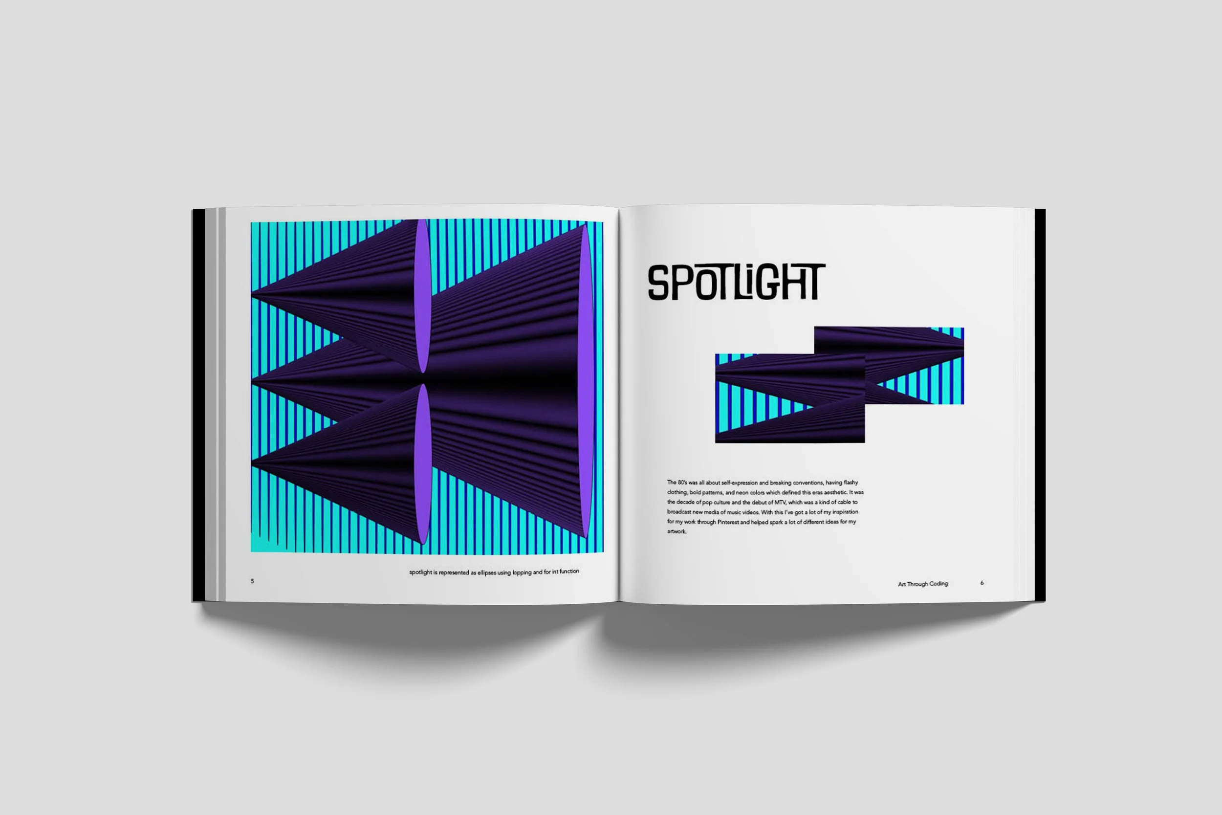 Coding through art is a series of work dedicated to exploring the fundamentals of coding using the software Processing. The overall theme of the series is inspired by the retro aesthetics of the 80s, characterized by bold shapes, bright neon colors, and a playful, nostalgic energy. Using Processing, I created both static and non-static pieces. The static works are still compositions that showcase how code can be used to generate visually compelling digital art, while the non-static pieces incorporate animation / interaction, bringing the visuals to life and inviting viewers to engage with the movement and rhythm of the forms.