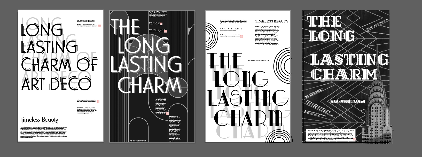 This poster series is inspired by the Art Deco movement, which aimed to elevate the decorative arts to a higher level through sleek geometry, symmetry, and elegance. When creating these posters, I focused on capturing the clean, refined aesthetic that defines the style blending bold shapes, subtle textures, and a sense of sophistication. The series was created digitally, with one of the posters also printed using a Riso printer to experiment with texture and layering in a more tactile way. This project was developed in response to Legacy, a graphic design conference I attended that encouraged us to explore historic design movements and reinterpret them through a contemporary lens. It was a great opportunity to blend past and present in a meaningful way.